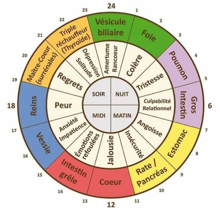 L’ horloge des organes est un bon indicateur de ce qui peut dysfonctionner dans votre corps. Si vous vous réveillez à la même heure chaque nuit ou si vous subissez des symptômes désagréables autour de 15 heures, vous pouvez regarder le méridien impliqué à cette horaire et observer la nature de ces symptômes.
